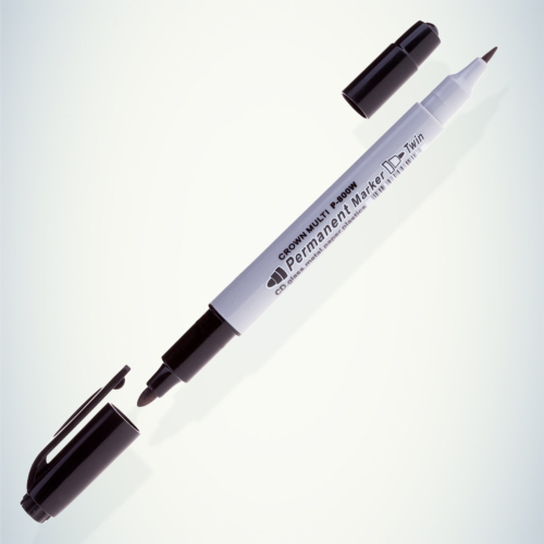 Двусторонний перманентный (постоянный) маркер на спиртовой основе. Благодаря двум пишущим узлам разного диаметра, находящихся на противоположных сторонах корпуса, можно варьировать толщину линии от 1 мм до 2 мм.