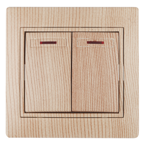Выключатель 2-клавишный с подсветкой серии Intro Plano скрытой установки цвет сосна 1-105-11. Номинальные характеристики 10А 250В . Выключатель выполнен из качественного негорючего термопласта, укомплектован одноместной рамкой, оснащён винтовыми клеммами. Вертикальное расположение клемм обеспечивает удобный и надёжный монтаж. Клеммы с двумя отверстиями позволяют соединять соседние выключатели шлейфом. Установка в подрозетник производится как на монтажные лапки, так и на винты. Для установки 2-х и более выключателей в несколько подрозетников в ряд дополнительно используются многоместные рамки: 2-х постовая - 1-502-хх, 3-х постовая 1-503-хх, 4-х постовая - 1-504-хх (где хх - цветовой код: 01 - белый, 02 - слоновая кость, 03 - алюминий, 04 - шампань, 05 - антрацит, 10 - венге, 11 - сосна).