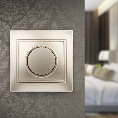 Диммер поворотный серии Intro Plano скрытой установки цвет шампань 1-401-04. Номинальные характеристики 600Вт, 230В . Диммер выполнен из негорючего термопласта, укомплектована одноместной рамкой. Для установки 2-х и более устройств в несколько подрозетников в ряд дополнительно используются многоместные рамки: 2-х постовая - 1-502-хх, 3-х постовая 1-503-хх, 4-х постовая - 1-504-хх (где хх - цветовой код: 01 - белый, 02 - слоновая кость, 03 - алюминий, 04 - шампань, 05 - антрацит, 10 - венге, 11 - сосна). Другие устройства серии вы можете найти введя в поиск Intro Plano.