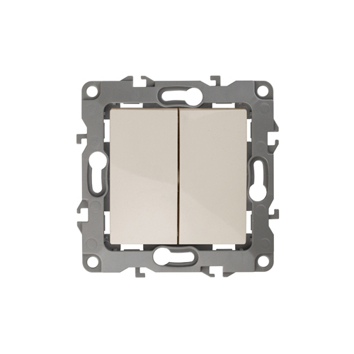 Двойной выключатель "ЭРА" выполнен из прочного пластика, контакты бронзовые. Изделие просто в установке, надежно в эксплуатации. Выключатель имеет специальные фиксаторы, которые не дают ему смещаться как при монтаже, так и в процессе эксплуатации. Автоматические зажимы кабеля обеспечивают быстрый и надежный монтаж изделия к электросети без отвертки и не требуют обслуживания в отличие от винтовых зажимов.