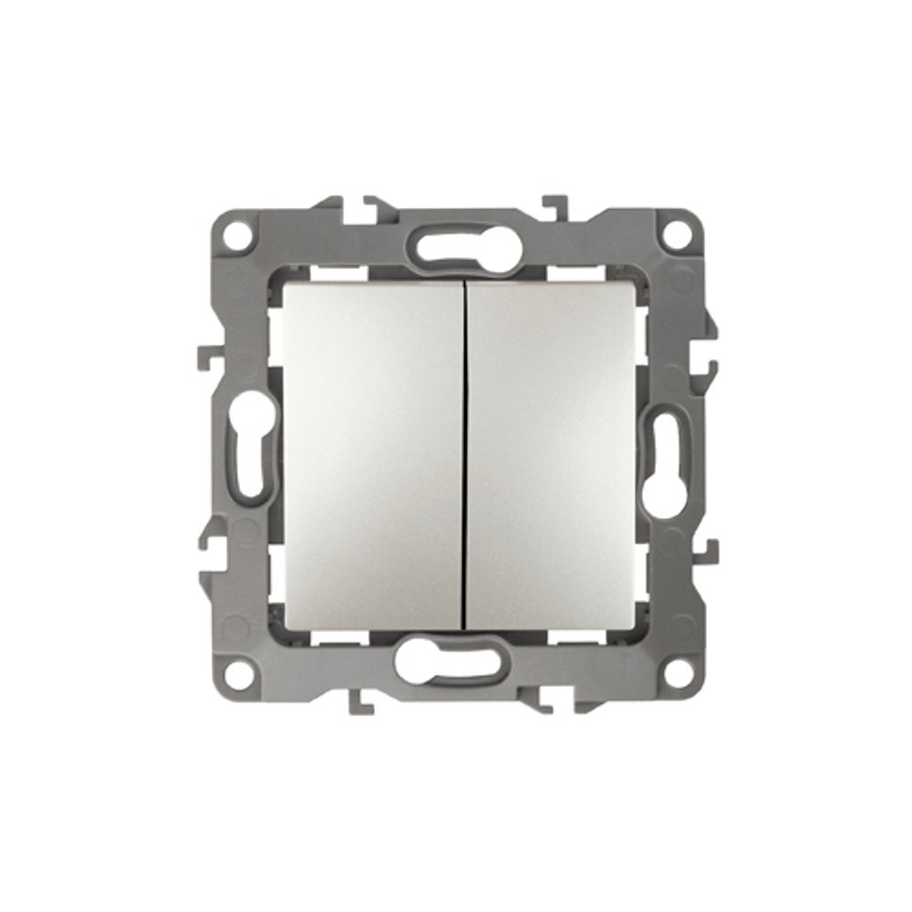 Выключатель двойной, 10АХ-250В, без м.лапок, Эра12, перламутр