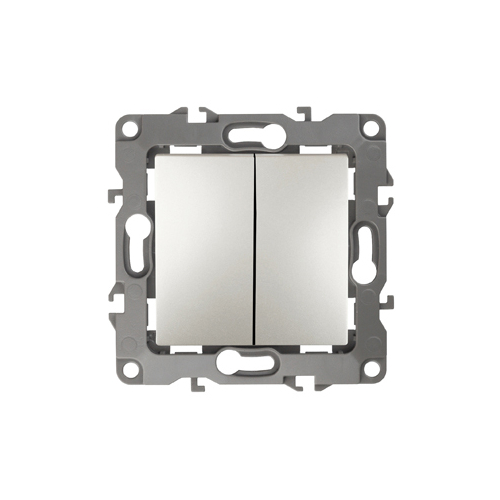 Выключатель 2-клавишный серии Эра 12 скрытой установки механизм цвет перламутр 12-1104-15. Номинальные характеристики 10А 250В . Сделан из поликарбоната, оснащёно автоматическими клеммами для быстрй и надёжной фиксации жил кабеля в механиме. Парные клеммы обеспечивают соединение шлейфом. Монтаж в подрозетник производится и на лапки, и на винты. Рамки приобретаются отдельно. Рамки Эра 12: 1 пост 12-5001-хх, 2 поста 12-5002-хх, 3 поста 12-5003-хх, 4 поста 12-5004-хх, 5 постов 12-5005-хх. Рамки Эра 12 Сатин: 1 пост 12-5101-хх, 2 поста 12-5102-хх, 3 поста 12-5103-хх, 4 поста 12-5104-хх, 5 постов - 12-5105-хх (хх - код цвета: 01-белый, 02-слоновая кость, 03-алюминий, 04-шампань, 05-антрацит, 06-чёрный, 07-ольха(белёный дуб-сатин), 08-вишня, 09-дуб, 10-венге, 11-сосна, 21-жёлтый, 22-оранжевый, 23-красный, 24-охра, 25-бордо, 26-лайм, 27-зелёный, 28-голубой, 29-синий).
