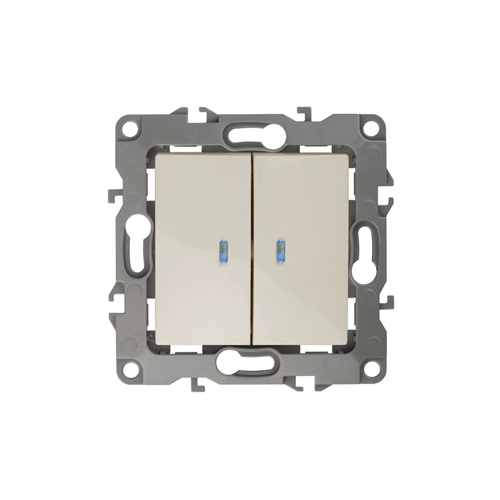 Выключатель 2-клавишный с подсветкой серии Эра 12 скрыт.установки механизм цвет слоновая кость 12-1105-02. Номинальные характеристики 10А 250 . Сделан из поликарбоната, оснащёно автоматическими клеммами для быстрй и надёжной фиксации жил кабеля в механиме. Парные клеммы обеспечивают соединение шлейфом. Монтаж в подрозетник производится и на лапки, и на винты. Рамки приобретаются отдельно. Рамки Эра 12: 1 пост 12-5001-хх, 2 поста 12-5002-хх, 3 поста 12-5003-хх, 4 поста 12-5004-хх, 5 постов 12-5005-хх. Рамки Эра 12 Сатин: 1 пост 12-5101-хх, 2 поста 12-5102-хх, 3 поста 12-5103-хх, 4 поста 12-5104-хх, 5 постов - 12-5105-хх (хх - код цвета: 01-белый, 02-слоновая кость, 03-алюминий, 04-шампань, 05-антрацит, 06-чёрный, 07-ольха(белёный дуб-сатин), 08-вишня, 09-дуб, 10-венге, 11-сосна, 21-жёлтый, 22-оранжевый, 23-красный, 24-охра, 25-бордо, 26-лайм, 27-зелёный, 28-голубой, 29-синий).
