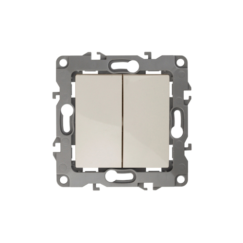 Выключатель 2-клавишный проходной серии Эра 12 скрытой установки механизм цвет слоновая кость 12-1106-02. Номинальные характеристики 10А 250В . Сделан из поликарбоната, оснащёно автоматическими клеммами для быстрй и надёжной фиксации жил кабеля в механиме. Парные клеммы обеспечивают соединение шлейфом. Монтаж в подрозетник производится и на лапки, и на винты. Рамки приобретаются отдельно. Рамки Эра 12: 1 пост 12-5001-хх, 2 поста 12-5002-хх, 3 поста 12-5003-хх, 4 поста 12-5004-хх, 5 постов 12-5005-хх. Рамки Эра 12 Сатин: 1 пост 12-5101-хх, 2 поста 12-5102-хх, 3 поста 12-5103-хх, 4 поста 12-5104-хх, 5 постов - 12-5105-хх (хх - код цвета: 01-белый, 02-слоновая кость, 03-алюминий, 04-шампань, 05-антрацит, 06-чёрный, 07-ольха(белёный дуб-сатин), 08-вишня, 09-дуб, 10-венге, 11-сосна, 21-жёлтый, 22-оранжевый, 23-красный, 24-охра, 25-бордо, 26-лайм, 27-зелёный, 28-голубой, 29-синий).
