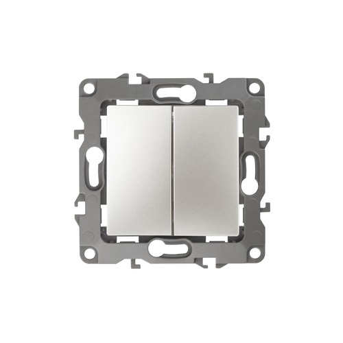 Выключатель 2-клавишный проходной серии Эра 12 скрытой установки механизм цвет перламутр 12-1106-15. Номинальные характеристики 10А 250В . Сделан из поликарбоната, оснащёно автоматическими клеммами для быстрй и надёжной фиксации жил кабеля в механиме. Парные клеммы обеспечивают соединение шлейфом. Монтаж в подрозетник производится и на лапки, и на винты. Рамки приобретаются отдельно. Рамки Эра 12: 1 пост 12-5001-хх, 2 поста 12-5002-хх, 3 поста 12-5003-хх, 4 поста 12-5004-хх, 5 постов 12-5005-хх. Рамки Эра 12 Сатин: 1 пост 12-5101-хх, 2 поста 12-5102-хх, 3 поста 12-5103-хх, 4 поста 12-5104-хх, 5 постов - 12-5105-хх (хх - код цвета: 01-белый, 02-слоновая кость, 03-алюминий, 04-шампань, 05-антрацит, 06-чёрный, 07-ольха(белёный дуб-сатин), 08-вишня, 09-дуб, 10-венге, 11-сосна, 21-жёлтый, 22-оранжевый, 23-красный, 24-охра, 25-бордо, 26-лайм, 27-зелёный, 28-голубой, 29-синий).
