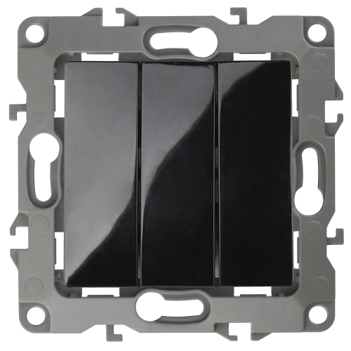 Выключатель 3-клавишный серии Эра 12 скрытой установки механизм цвет чёрный 12-1107-06. Номинальные характеристики 10А 250В . Сделан из поликарбоната, оснащён винтовыми уникальными клеммами ЭКСПЕРТ для надёжной фиксации жил кабеля в механиме. Парные клеммы обеспечивают соединение шлейфом. Монтаж в подрозетник производится и на лапки, и на винты. Рамки приобретаются отдельно. Рамки Эра 12: 1 пост 12-5001-хх, 2 поста 12-5002-хх, 3 поста 12-5003-хх, 4 поста 12-5004-хх, 5 постов 12-5005-хх. Рамки Эра 12 Сатин: 1 пост 12-5101-хх, 2 поста 12-5102-хх, 3 поста 12-5103-хх, 4 поста 12-5104-хх, 5 постов - 12-5105-хх (хх - код цвета: 01-белый, 02-слоновая кость, 03-алюминий, 04-шампань, 05-антрацит, 06-чёрный, 07-ольха(белёный дуб-сатин), 08-вишня, 09-дуб, 10-венге, 11-сосна, 21-жёлтый, 22-оранжевый, 23-красный, 24-охра, 25-бордо, 26-лайм, 27-зелёный, 28-голубой, 29-синий).