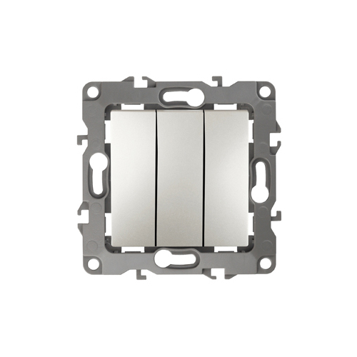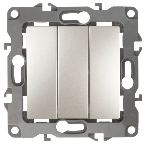 Выключатель 3-клавишный серии Эра 12 скрытой установки механизм цвет перламутр 12-1107-15. Номинальные характеристики 10А 250В . Сделан из поликарбоната, оснащён винтовыми уникальными клеммами ЭКСПЕРТ для надёжной фиксации жил кабеля в механиме. Парные клеммы обеспечивают соединение шлейфом. Монтаж в подрозетник производится и на лапки, и на винты. Рамки приобретаются отдельно.