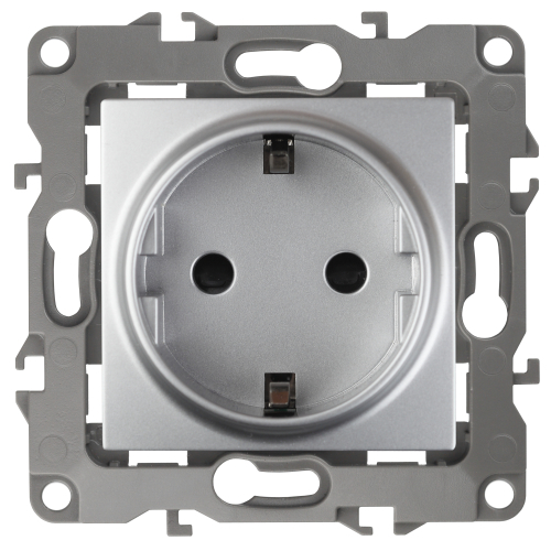 Розетка с заземлением серии Эра 12 скрытой установки механизм цвет алюминий 12-2101-03. Номинальные хар-ки 16А 250В . Сделана из поликарбоната, оснащёна автоматическими клеммами для быстрй и надёжной фиксации жил кабеля в механиме. Парные клеммы обеспечивают соединение шлейфом. Монтаж в подрозетник производится и на лапки, и на винты. Рамки приобретаются отдельно. Рамки Эра 12: 1 пост 12-5001-хх, 2 поста 12-5002-хх, 3 поста 12-5003-хх, 4 поста 12-5004-хх, 5 постов 12-5005-хх. Рамки Эра 12 Сатин: 1 пост 12-5101-хх, 2 поста 12-5102-хх, 3 поста 12-5103-хх, 4 поста 12-5104-хх, 5 постов - 12-5105-хх (хх - код цвета: 01-белый, 02-слоновая кость, 03-алюминий, 04-шампань, 05-антрацит, 06-чёрный, 07-ольха(белёный дуб-сатин), 08-вишня, 09-дуб, 10-венге, 11-сосна, 21-жёлтый, 22-оранжевый, 23-красный, 24-охра, 25-бордо, 26-лайм, 27-зелёный, 28-голубой, 29-синий).