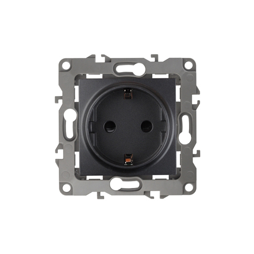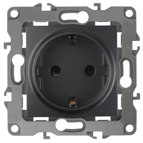 Розетка с заземлением со шторками серии Эра 12 скрытой установки механизм цвет антрацит 12-2102-05. Номинальные хар-ки 16А 250В . Сделана из поликарбоната, оснащёна автоматическими клеммами для бысторй и надёжной фиксации жил кабеля в мех аниме. Парные клеммы обеспечивают соединение шлейфом. Монтаж в подрозетник производится и на лапки, и на винты. Рамки приобретаются отдельно. Рамки Эра 12: 1 пост 12-5001-хх, 2 поста 12-5002-хх, 3 поста 12-5003-хх, 4 поста 12-5004-хх, 5 постов 12-5005-хх. Рамки Эра 12 Сатин: 1 пост 12-5101-хх, 2 поста 12-5102-хх, 3 поста 12-5103-хх, 4 поста 12-5104-хх, 5 постов - 12-5105-хх (хх - код цвета: 01-белый, 02-слоновая кость, 03-алюминий, 04-шампань, 05-антрацит, 06-чёрный, 07-ольха(белёный дуб-сатин), 08-вишня, 09-дуб, 10-венге, 11-сосна, 21-жёлтый, 22-оранжевый, 23-красный, 24-охра, 25-бордо, 26-лайм, 27-зелёный, 28-голубой, 29-синий).