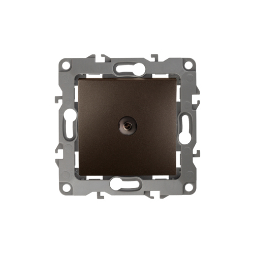 Розетка телевизионная одиночная серии Эра 12 скрытой установки механизм цвет бронза 12-3101-13. Сделана из поликарбоната. Монтаж в подрозетник производится и на лапки, и на винты. Рамки приобретаются отдельно. Рамки Эра 12: 1 пост 12-5001-хх, 2 поста 12-5002-хх, 3 поста 12-5003-хх, 4 поста 12-5004-хх, 5 постов 12-5005-хх. Рамки Эра 12 Сатин: 1 пост 12-5101-хх, 2 поста 12-5102-хх, 3 поста 12-5103-хх, 4 поста 12-5104-хх, 5 постов - 12-5105-хх