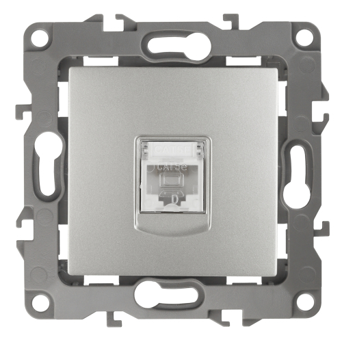 Розетка интернет RJ45 серии Эра 12 скрытой установки механизм цвет алюминий 12-3107-03. Сделана из поликарбоната. Монтаж в подрозетник производится и на лапки, и на винты. Рамки приобретаются отдельно. Рамки Эра 12: 1 пост 12-5001-хх, 2 поста 12-5002-хх, 3 поста 12-5003-хх, 4 поста 12-5004-хх, 5 постов 12-5005-хх. Рамки Эра 12 Сатин: 1 пост 12-5101-хх, 2 поста 12-5102-хх, 3 поста 12-5103-хх, 4 поста 12-5104-хх, 5 постов - 12-5105-хх