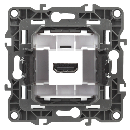 Розетка HDMI серии Эра 12 скрытой установки механизм цвет антрацит 12-3114-05. Сделана из поликарбоната. Монтаж в подрозетник производится и на лапки, и на винты. Рамки приобретаются отдельно. Рамки Эра 12: 1 пост 12-5001-хх, 2 поста 12-5002-хх, 3 поста 12-5003-хх, 4 поста 12-5004-хх, 5 постов 12-5005-хх. Рамки Эра 12 Сатин: 1 пост 12-5101-хх, 2 поста 12-5102-хх, 3 поста 12-5103-хх, 4 поста 12-5104-хх, 5 постов - 12-5105-хх (хх - код цвета: 01-белый, 02-слоновая кость, 03-алюминий, 04-шампань, 05-антрацит, 06-чёрный, 07-ольха(белёный дуб-сатин), 08-вишня, 09-дуб, 10-венге, 11-сосна, 21-жёлтый, 22-оранжевый, 23-красный, 24-охра, 25-бордо, 26-лайм, 27-зелёный, 28-голубой, 29-синий).