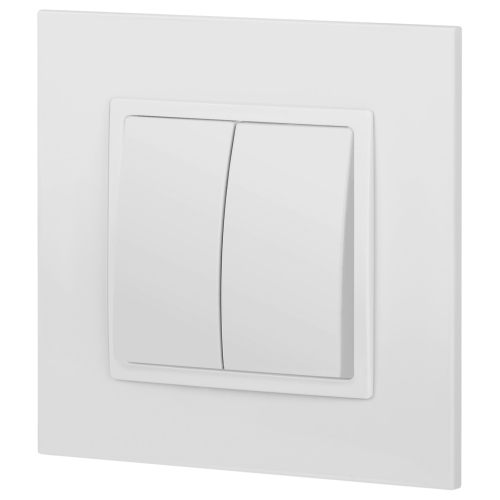 Выключатель 2-клавишный Эра Elegance белый 14-1104-01. Оснащён автоматическими клеммами для надёжной фиксации жил кабеля в механизме. Рамки приобретаются отдельно. Рамки Эра Elegance ПЛАСТИК: 1 пост 14-5001-хх, 2 поста 14-5002-хх, 3 поста 14-5003-хх, 4 поста 14-5004-хх, 5 постов 14-5005-хх; СТЕКЛО: 1 пост 14-5101-хх, 2 поста 14-5102-хх, 3 поста 14-5103-хх, 4 поста 14-5104-хх; МЕТАЛЛ: 1 пост 14-5201-хх, 2 поста 14-5202-хх, 3 поста 14-5203-хх, 4 поста 14-5204-хх; ДЕРЕВО: 1 пост 14-5301-хх, 2 поста 14-5302-хх, 3 поста 14-5303-хх, 4 поста 14-5304-хх (хх - код цвета: 00-прозрачный, 01-белый, белёный дуб, 02-слоновая кость, 03-алюминий, 04-шампань, 05-чёрный, чёрное дерево, 07-ясень, 09-дуб, 10-венге, 11-клён, 14-медь, 21-жёлтый, 22-оранжевый, 23-красный, 25-бордо, 26-лайм, 27-зелёный, 28-голубой, 29-синий, 30-розовый, 31-мокко, 32-серый, 41-сталь, 42-титан).