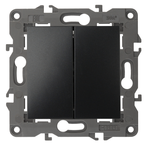Выключатель 2-клавишный Эра Elegance антрацит 14-1104-05. Оснащён автоматическими клеммами для надёжной фиксации жил кабеля в механизме. Рамки приобретаются отдельно.