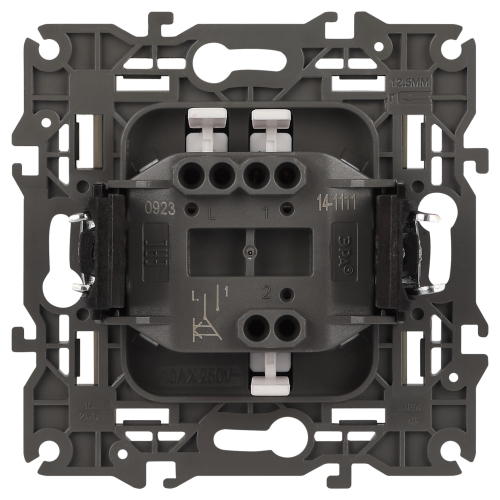 Кнопка включения серии Эра Elegance скрытой установки механизм цвет антрацит 14-1111-05. Номинальные характеристики: 10А-250В. Сделана из поликарбоната, оснащена автоматическими клеммами для быстрой и надёжной фиксации жил кабеля в механизме. Монтаж в подрозетник производится и на лапки, и на винты. Рамки приобретаются отдельно. Рамки Эра Elegance: 1 пост 14-5001-хх, 2 поста 14-5002-хх, 3 поста 14-5003-хх, 4 поста 14-5004-хх, 5 постов 14-5005-хх. (хх - код цвета: 01-белый, 02-слоновая кость, 03-алюминий, 04-шампань, 05-антрацит). Может также комплектоваться рамками из натуральных материалов.