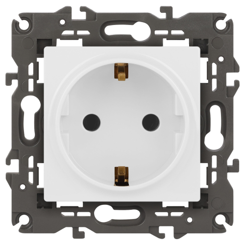 Розетка с заземлением Эра Elegance белый 14-2101-01. Оснащёна автоматическими клеммами для надёжной фиксации жил кабеля в механизме. Рамки приобретаются отдельно. Рамки Эра Elegance ПЛАСТИК: 1 пост 14-5001-хх, 2 поста 14-5002-хх, 3 поста 14-5003-хх, 4 поста 14-5004-хх, 5 постов 14-5005-хх; СТЕКЛО: 1 пост 14-5101-хх, 2 поста 14-5102-хх, 3 поста 14-5103-хх, 4 поста 14-5104-хх; МЕТАЛЛ: 1 пост 14-5201-хх, 2 поста 14-5202-хх, 3 поста 14-5203-хх, 4 поста 14-5204-хх; ДЕРЕВО: 1 пост 14-5301-хх, 2 поста 14-5302-хх, 3 поста 14-5303-хх, 4 поста 14-5304-хх (хх - код цвета: 00-прозрачный, 01-белый, белёный дуб, 02-слоновая кость, 03-алюминий, 04-шампань, 05-чёрный, чёрное дерево, 07-ясень, 09-дуб, 10-венге, 11-клён, 14-медь, 21-жёлтый, 22-оранжевый, 23-красный, 25-бордо, 26-лайм, 27-зелёный, 28-голубой, 29-синий, 30-розовый, 31-мокко, 32-серый, 41-сталь, 42-титан).