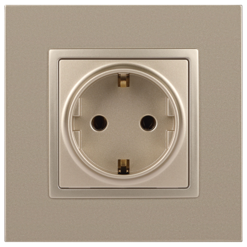 Розетка с заземлением Эра Elegance шампань 14-2101-04. Оснащёна автоматическими клеммами для надёжной фиксации жил кабеля в механизме. Рамки приобретаются отдельно. Рамки Эра Elegance ПЛАСТИК: 1 пост 14-5001-хх, 2 поста 14-5002-хх, 3 поста 14-5003-хх, 4 поста 14-5004-хх, 5 постов 14-5005-хх; СТЕКЛО: 1 пост 14-5101-хх, 2 поста 14-5102-хх, 3 поста 14-5103-хх, 4 поста 14-5104-хх; МЕТАЛЛ: 1 пост 14-5201-хх, 2 поста 14-5202-хх, 3 поста 14-5203-хх, 4 поста 14-5204-хх; ДЕРЕВО: 1 пост 14-5301-хх, 2 поста 14-5302-хх, 3 поста 14-5303-хх, 4 поста 14-5304-хх (хх - код цвета: 00-прозрачный, 01-белый, белёный дуб, 02-слоновая кость, 03-алюминий, 04-шампань, 05-чёрный, чёрное дерево, 07-ясень, 09-дуб, 10-венге, 11-клён, 14-медь, 21-жёлтый, 22-оранжевый, 23-красный, 25-бордо, 26-лайм, 27-зелёный, 28-голубой, 29-синий, 30-розовый, 31-мокко, 32-серый, 41-сталь, 42-титан).