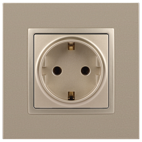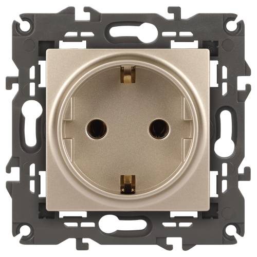 Розетка с заземлением со шторками Эра Elegance шампань 14-2102-04. Оснащёна автоматическими клеммами для надёжной фиксации жил кабеля в механизме. Рамки приобретаются отдельно. Рамки Эра Elegance ПЛАСТИК: 1 пост 14-5001-хх, 2 поста 14-5002-хх, 3 поста 14-5003-хх, 4 поста 14-5004-хх, 5 постов 14-5005-хх; СТЕКЛО: 1 пост 14-5101-хх, 2 поста 14-5102-хх, 3 поста 14-5103-хх, 4 поста 14-5104-хх; МЕТАЛЛ: 1 пост 14-5201-хх, 2 поста 14-5202-хх, 3 поста 14-5203-хх, 4 поста 14-5204-хх; ДЕРЕВО: 1 пост 14-5301-хх, 2 поста 14-5302-хх, 3 поста 14-5303-хх, 4 поста 14-5304-хх (хх - код цвета: 00-прозрачный, 01-белый, белёный дуб, 02-слоновая кость, 03-алюминий, 04-шампань, 05-чёрный, чёрное дерево, 07-ясень, 09-дуб, 10-венге, 11-клён, 14-медь, 21-жёлтый, 22-оранжевый, 23-красный, 25-бордо, 26-лайм, 27-зелёный, 28-голубой, 29-синий, 30-розовый, 31-мокко, 32-серый, 41-сталь, 42-титан).