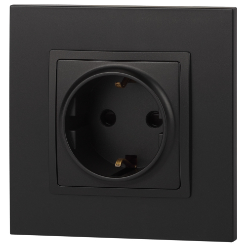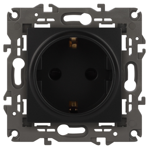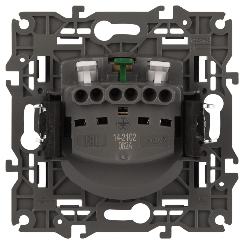 Розетка с заземлением со шторками Эра Elegance антрацит 14-2102-05. Оснащёна автоматическими клеммами для надёжной фиксации жил кабеля в механизме. Рамки приобретаются отдельно. Рамки Эра Elegance ПЛАСТИК: 1 пост 14-5001-хх, 2 поста 14-5002-хх, 3 поста 14-5003-хх, 4 поста 14-5004-хх, 5 постов 14-5005-хх; СТЕКЛО: 1 пост 14-5101-хх, 2 поста 14-5102-хх, 3 поста 14-5103-хх, 4 поста 14-5104-хх; МЕТАЛЛ: 1 пост 14-5201-хх, 2 поста 14-5202-хх, 3 поста 14-5203-хх, 4 поста 14-5204-хх; ДЕРЕВО: 1 пост 14-5301-хх, 2 поста 14-5302-хх, 3 поста 14-5303-хх, 4 поста 14-5304-хх (хх - код цвета: 00-прозрачный, 01-белый, белёный дуб, 02-слоновая кость, 03-алюминий, 04-шампань, 05-чёрный, чёрное дерево, 07-ясень, 09-дуб, 10-венге, 11-клён, 14-медь, 21-жёлтый, 22-оранжевый, 23-красный, 25-бордо, 26-лайм, 27-зелёный, 28-голубой, 29-синий, 30-розовый, 31-мокко, 32-серый, 41-сталь, 42-титан).
