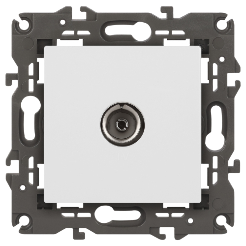 Розетка телевизионная одиночная серии Эра Elegance цвет белый 14-3101-01. Рамки приобретаются отдельно. Рамки Эра Elegance ПЛАСТИК: 1 пост 14-5001-хх, 2 поста 14-5002-хх, 3 поста 14-5003-хх, 4 поста 14-5004-хх, 5 постов 14-5005-хх; СТЕКЛО: 1 пост 14-5101-хх, 2 поста 14-5102-хх, 3 поста 14-5103-хх, 4 поста 14-5104-хх; МЕТАЛЛ: 1 пост 14-5201-хх, 2 поста 14-5202-хх, 3 поста 14-5203-хх, 4 поста 14-5204-хх; ДЕРЕВО: 1 пост 14-5301-хх, 2 поста 14-5302-хх, 3 поста 14-5303-хх, 4 поста 14-5304-хх (хх - код цвета: 00-прозрачный, 01-белый, белёный дуб, 02-слоновая кость, 03-алюминий, 04-шампань, 05-чёрный, чёрное дерево, 07-ясень, 09-дуб, 10-венге, 11-клён, 14-медь, 21-жёлтый, 22-оранжевый, 23-красный, 25-бордо, 26-лайм, 27-зелёный, 28-голубой, 29-синий, 30-розовый, 31-мокко, 32-серый, 41-сталь, 42-титан).