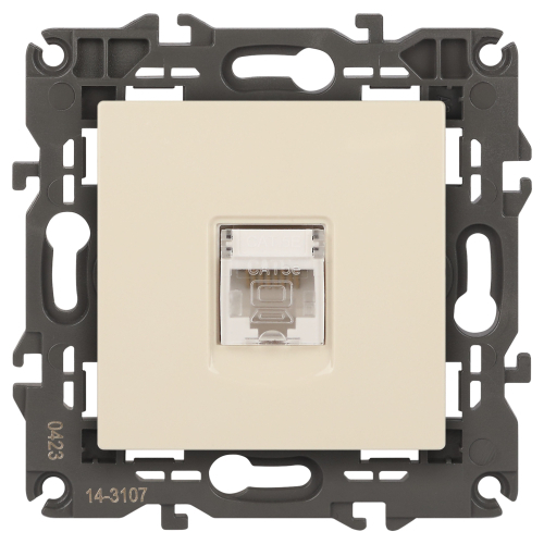 Розетка интернет RJ45 серии Эра Elegance цвет слоновая кость 14-3107-02. Рамки приобретаются отдельно. Рамки Эра Elegance ПЛАСТИК: 1 пост 14-5001-хх, 2 поста 14-5002-хх, 3 поста 14-5003-хх, 4 поста 14-5004-хх, 5 постов 14-5005-хх; СТЕКЛО: 1 пост 14-5101-хх, 2 поста 14-5102-хх, 3 поста 14-5103-хх, 4 поста 14-5104-хх; МЕТАЛЛ: 1 пост 14-5201-хх, 2 поста 14-5202-хх, 3 поста 14-5203-хх, 4 поста 14-5204-хх; ДЕРЕВО: 1 пост 14-5301-хх, 2 поста 14-5302-хх, 3 поста 14-5303-хх, 4 поста 14-5304-хх (хх - код цвета: 00-прозрачный, 01-белый, белёный дуб, 02-слоновая кость, 03-алюминий, 04-шампань, 05-чёрный, чёрное дерево, 07-ясень, 09-дуб, 10-венге, 11-клён, 14-медь, 21-жёлтый, 22-оранжевый, 23-красный, 25-бордо, 26-лайм, 27-зелёный, 28-голубой, 29-синий, 30-розовый, 31-мокко, 32-серый, 41-сталь, 42-титан).
