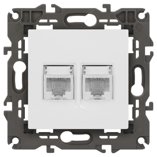 Розетка информационная двойная 2XRJ45 серии Эра Elegance скрытой установки цвет белый 14-3108-01. Выполенена из поликарбоната.