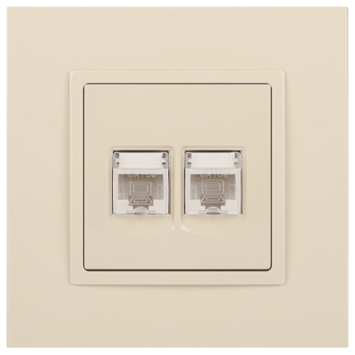 Розетка информационная двойная 2XRJ45 серии Эра Elegance скрытой установки цвет слоновая кость 14-3108-02. Выполенена из поликарбоната.