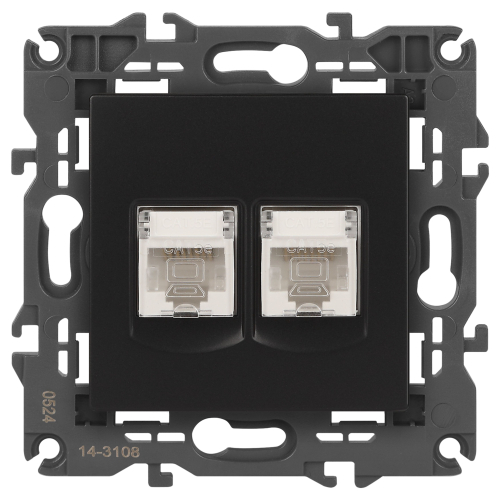 Розетка информационная двойная 2XRJ45 серии Эра Elegance скрытой установки цвет антрацит 14-3108-05. Выполенена из поликарбоната.