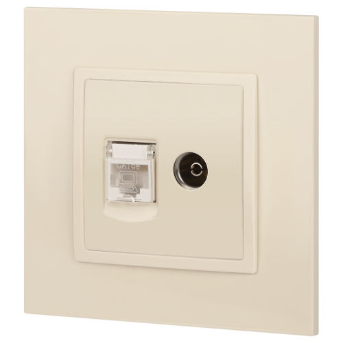 Розетка телевизионная + интернет серии Эра Elegance цвет слоновая кость 14-3110-02. Рамки приобретаются отдельно.