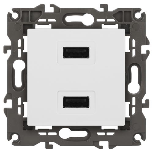 Устройство зарядное USB серии Эра Elegance цвет белый 14-4110-01. Номинальные характеристики . Оснащёно автоматическими клеммами для надёжной фиксации жил кабеля в механизме. Рамки приобретаются отдельно. Рамки Эра Elegance ПЛАСТИК: 1 пост 14-5001-хх, 2 поста 14-5002-хх, 3 поста 14-5003-хх, 4 поста 14-5004-хх, 5 постов 14-5005-хх; СТЕКЛО: 1 пост 14-5101-хх, 2 поста 14-5102-хх, 3 поста 14-5103-хх, 4 поста 14-5104-хх; МЕТАЛЛ: 1 пост 14-5201-хх, 2 поста 14-5202-хх, 3 поста 14-5203-хх, 4 поста 14-5204-хх; ДЕРЕВО: 1 пост 14-5301-хх, 2 поста 14-5302-хх, 3 поста 14-5303-хх, 4 поста 14-5304-хх (хх - код цвета: 00-прозрачный, 01-белый, белёный дуб, 02-слоновая кость, 03-алюминий, 04-шампань, 05-чёрный, чёрное дерево, 07-ясень, 09-дуб, 10-венге, 11-клён, 14-медь, 21-жёлтый, 22-оранжевый, 23-красный, 25-бордо, 26-лайм, 27-зелёный, 28-голубой, 29-синий, 30-розовый, 31-мокко, 32-серый, 41-сталь, 42-титан).