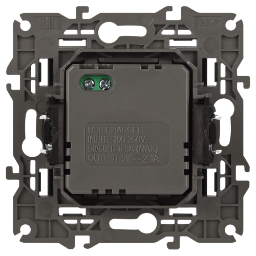 Устройство зарядное USB серии Эра Elegance цвет антрацит 14-4110-05. Номинальные характеристики . Оснащёно автоматическими клеммами для надёжной фиксации жил кабеля в механизме. Рамки приобретаются отдельно. Рамки Эра Elegance ПЛАСТИК: 1 пост 14-5001-хх, 2 поста 14-5002-хх, 3 поста 14-5003-хх, 4 поста 14-5004-хх, 5 постов 14-5005-хх; СТЕКЛО: 1 пост 14-5101-хх, 2 поста 14-5102-хх, 3 поста 14-5103-хх, 4 поста 14-5104-хх; МЕТАЛЛ: 1 пост 14-5201-хх, 2 поста 14-5202-хх, 3 поста 14-5203-хх, 4 поста 14-5204-хх; ДЕРЕВО: 1 пост 14-5301-хх, 2 поста 14-5302-хх, 3 поста 14-5303-хх, 4 поста 14-5304-хх (хх - код цвета: 00-прозрачный, 01-белый, белёный дуб, 02-слоновая кость, 03-алюминий, 04-шампань, 05-чёрный, чёрное дерево, 07-ясень, 09-дуб, 10-венге, 11-клён, 14-медь, 21-жёлтый, 22-оранжевый, 23-красный, 25-бордо, 26-лайм, 27-зелёный, 28-голубой, 29-синий, 30-розовый, 31-мокко, 32-серый, 41-сталь, 42-титан).