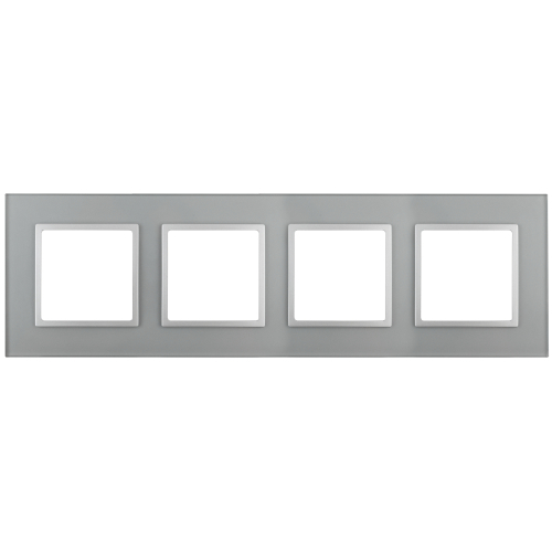Рамка для выключателей и розеток 4-постовая серии Эра Elegance цвет алюминий 14-5104-03. Сделана из стекла. Используется только с механизмами серии Эра Elegance.