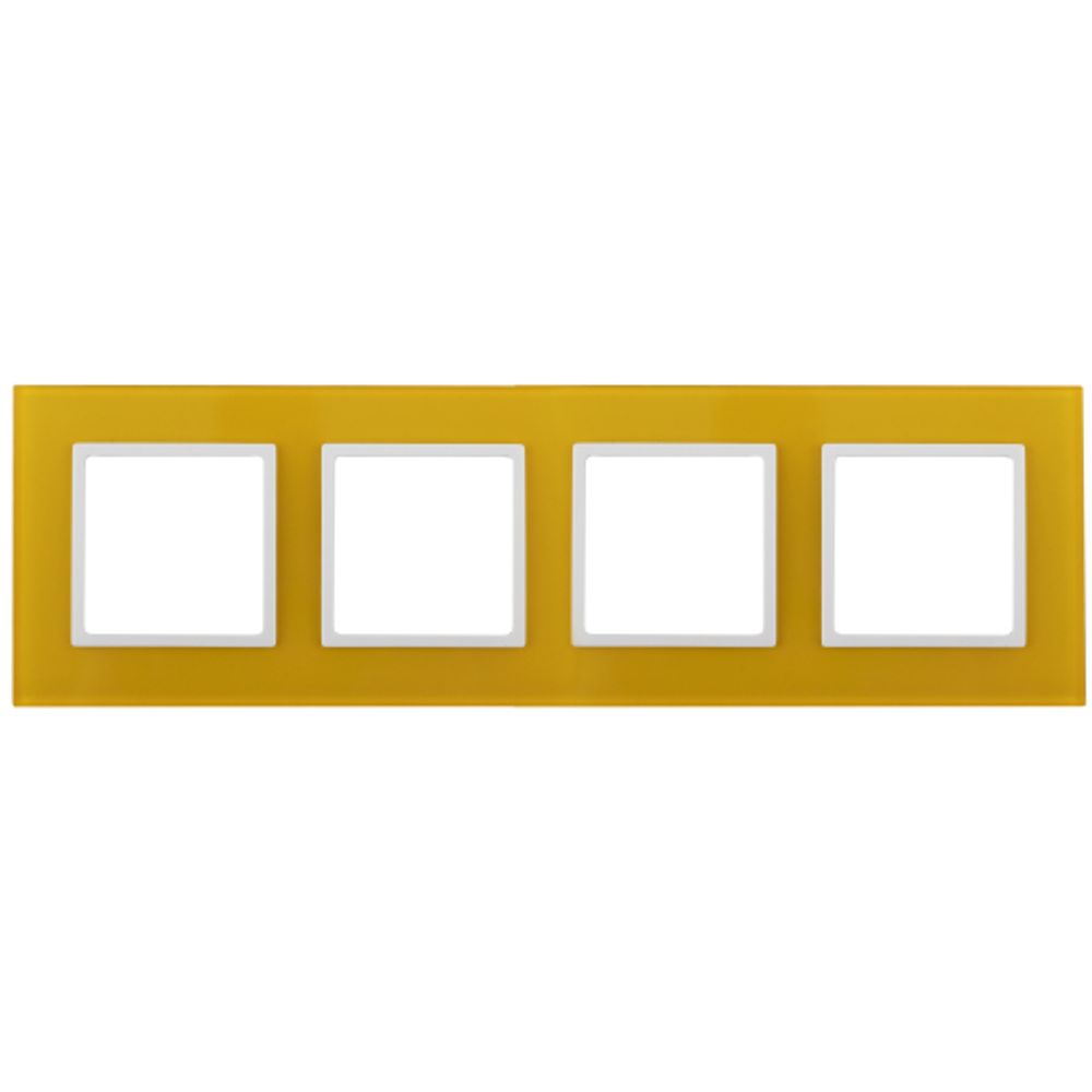 Рамка для выключателей и розеток 4-постовая серии Эра Elegance цвет жёлтый 14-5104-21. Сделана из стекла. Используется только с механизмами серии Эра Elegance.