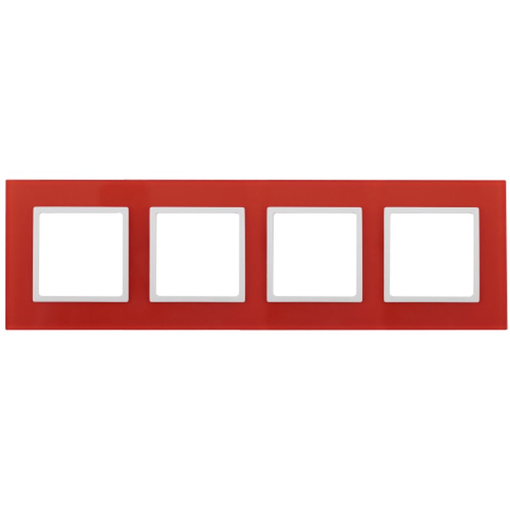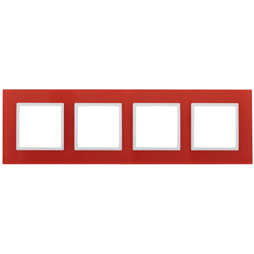 Рамка для выключателей и розеток 4-постовая серии Эра Elegance цвет красный 14-5104-23. Сделана из стекла. Используется только с механизмами серии Эра Elegance.