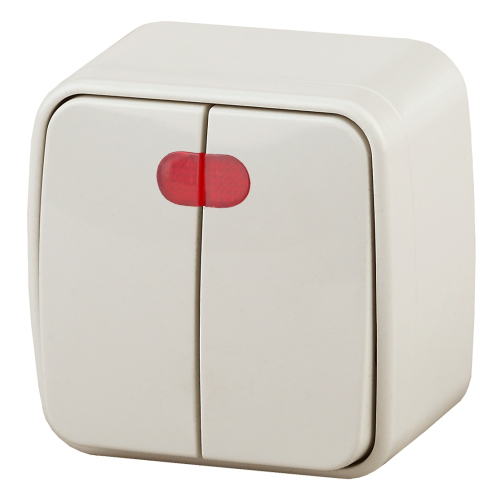 Выключатель2-клавишный с подсветкой серии Intro Polo открытой установки цвет сл.кость 3-105-02. Номинальные характеристики 10А 250В . Выключатель выполнен из качественного термопласта, стали и латуни, оснащён винтовыми зажимами.