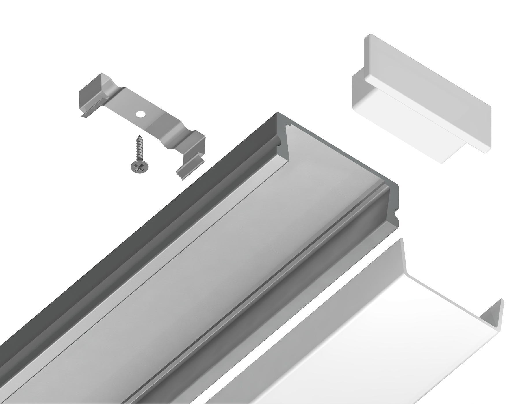 профиль - 2 м., рассеиватель - 2 м., заглушки - 2 шт., крепления - 4 шт.