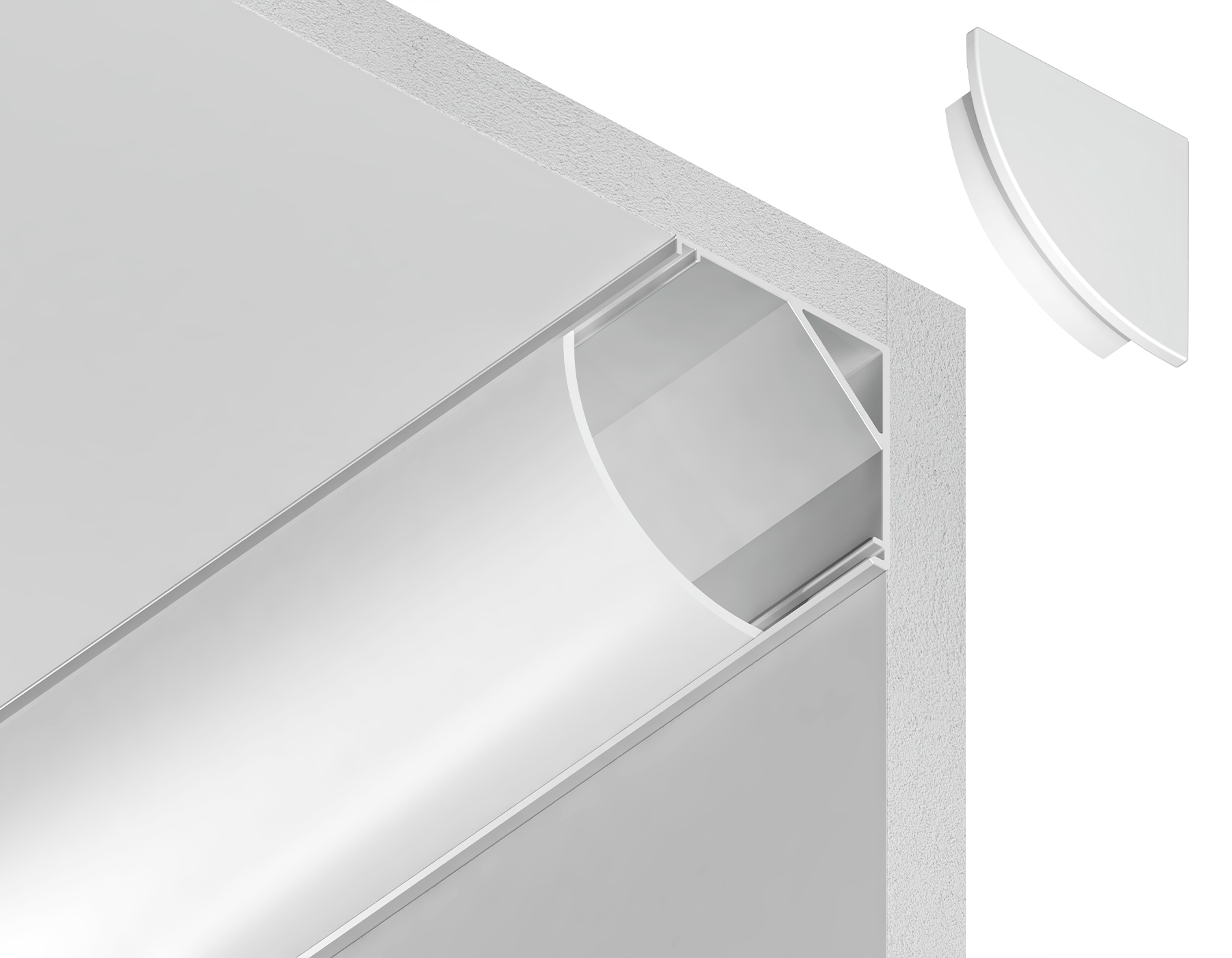 Алюминиевый профиль угловой круглый для светодиодной ленты из коллекции ILLUMINATION. Данная модель следующего размера: 2000*15.7*15.7mm, внутри алюминиевого профиля можно установить светодиодную ленту шириной до 9,78mm. В алюминиевый профиль уже установлен рассеиватель белого матового цвета, изготовленный из светорассеивающего поликарбоната. Матовый рассеиватель придаст освещению мягкости и комфорта. Алюминиевые профили применяются как для декоративного освещения, так и для основного. В комплект к профилю прилагается 2 заглушки и 4 крепления.