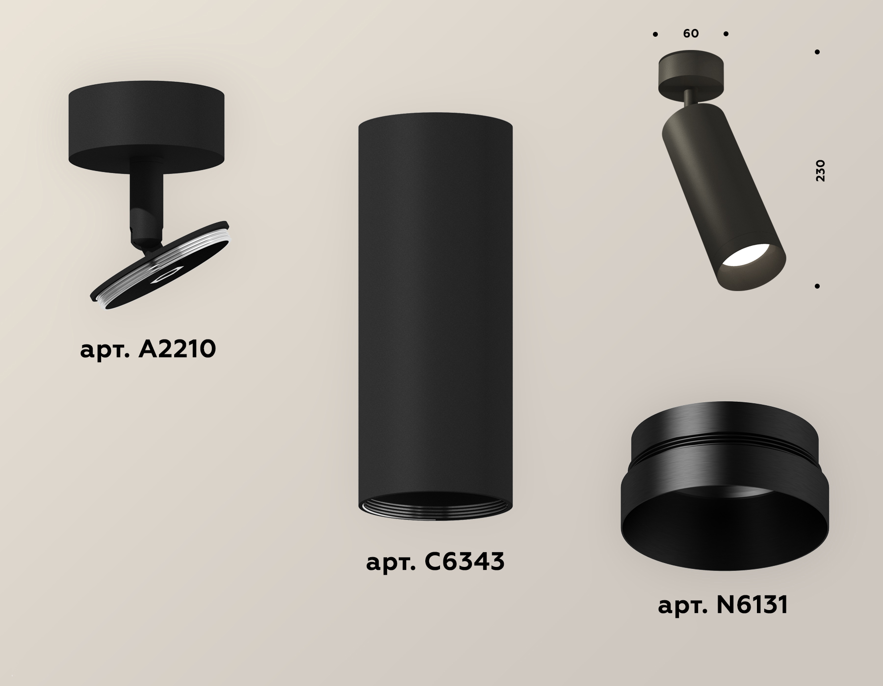 накладной корпус D60 (цоколь GU5.3 в комплекте), насадка передняя D60, насадка задняя D60