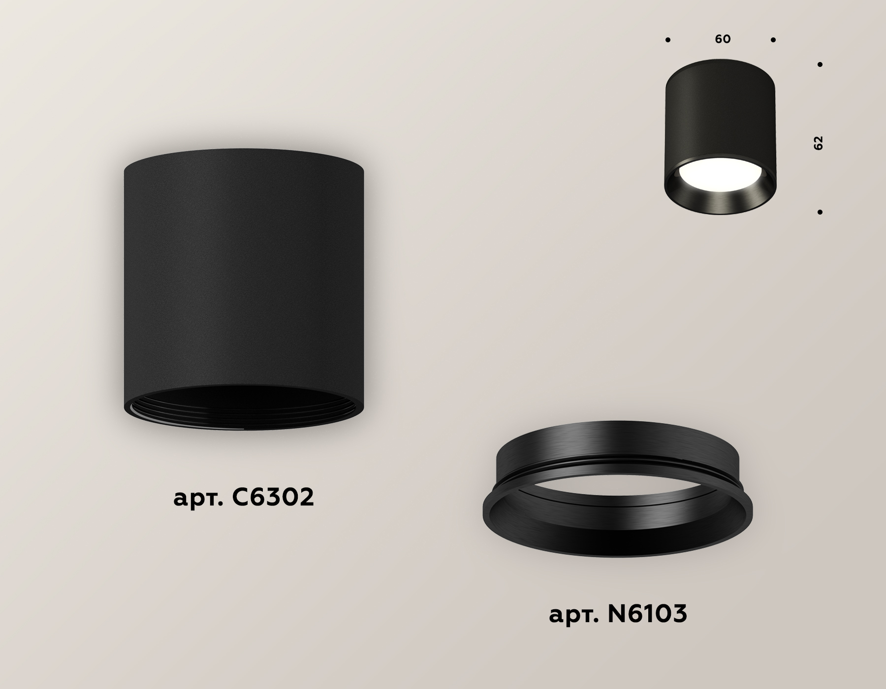 накладной корпус D60 (цоколь GU5.3 в комплекте), насадка передняя D60
