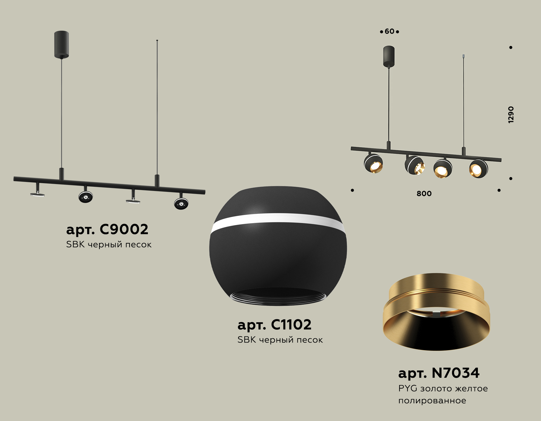 XB9002500/4 SBK/PYG черный песок/золото желтое полированное MR16 GU5.3 (С9002, С1102, N7034)