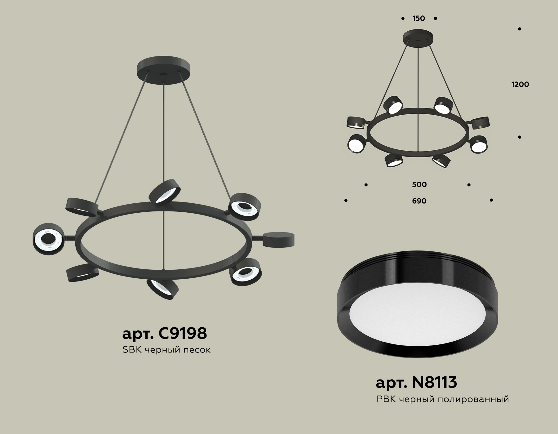 XB9198150/8 SBK/PBK черный песок/черный полированный GX53 (C9198, N8113)