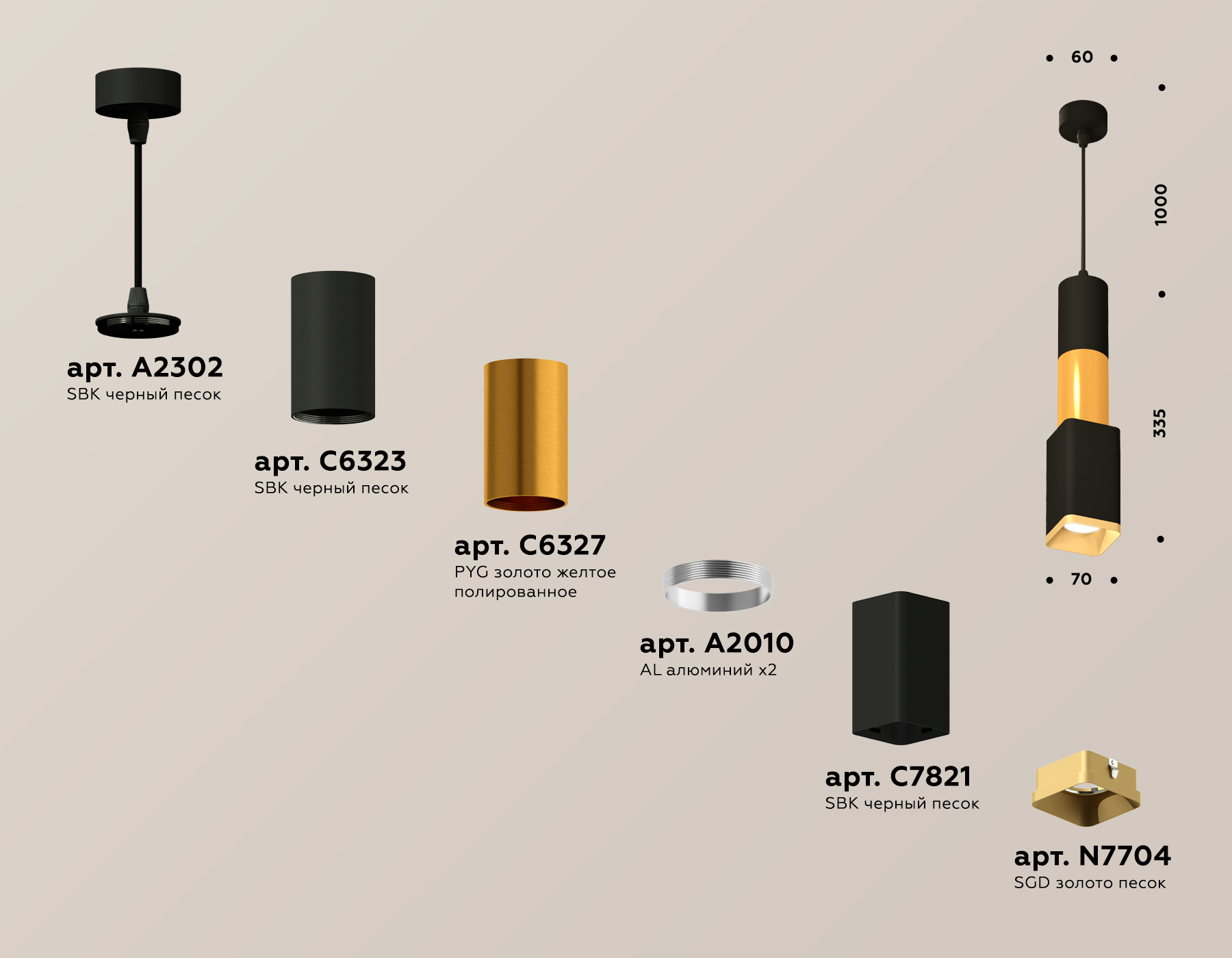 крепеж подвесной D60, корпус 70*70, корпус D60*2шт, коннектор*2шт, насадка передня 70*70