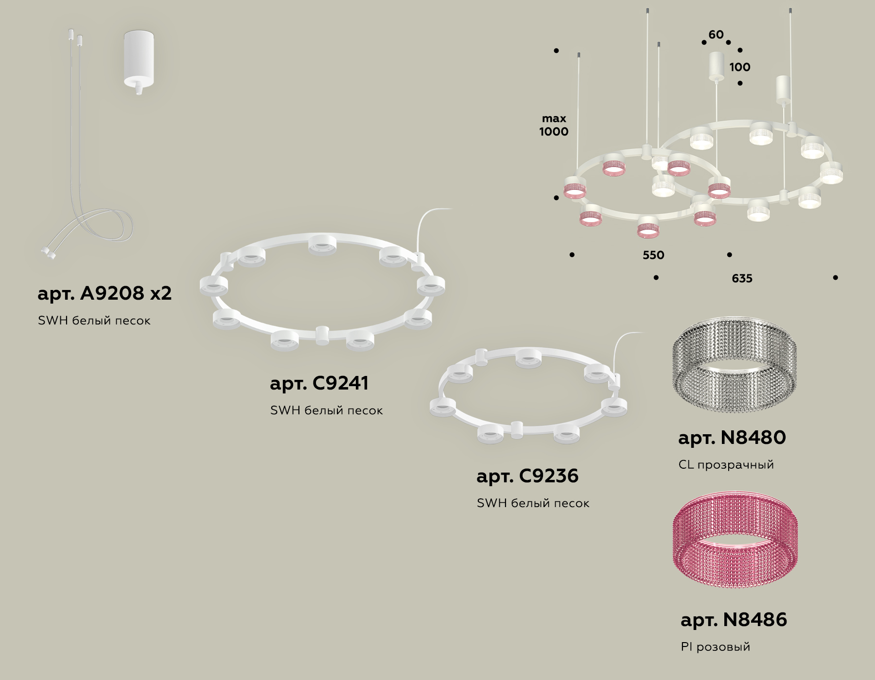 XR92081310/16 WH/CL/PI белый песок/прозрачный/розовый GX53 (A9208, C9241, C9236, N8480, N8486)
