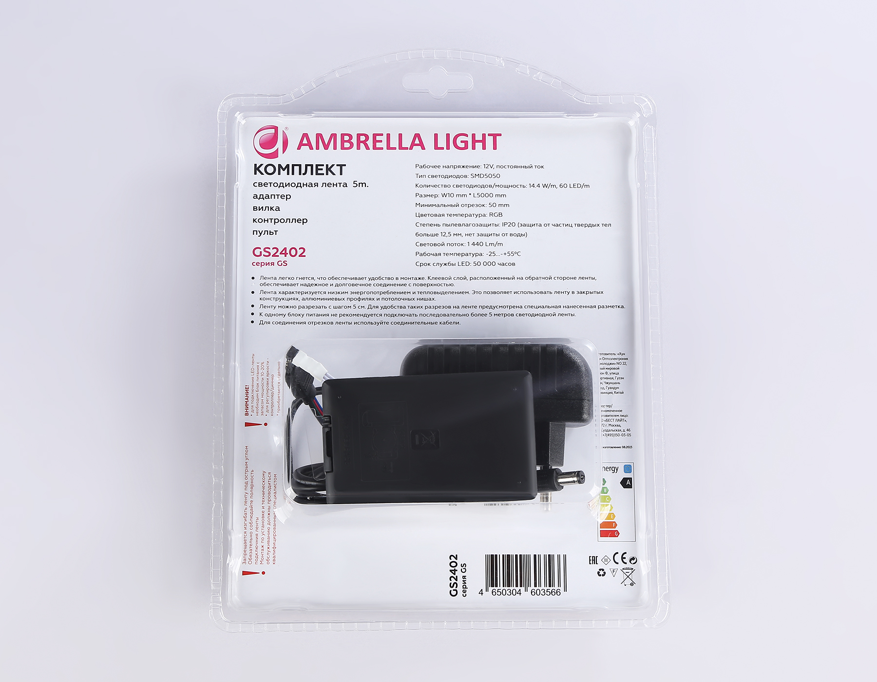 Светодиодная лента, адаптер, вилка, контроллер, пульт ИК (батарейка AAA не в комплекте)