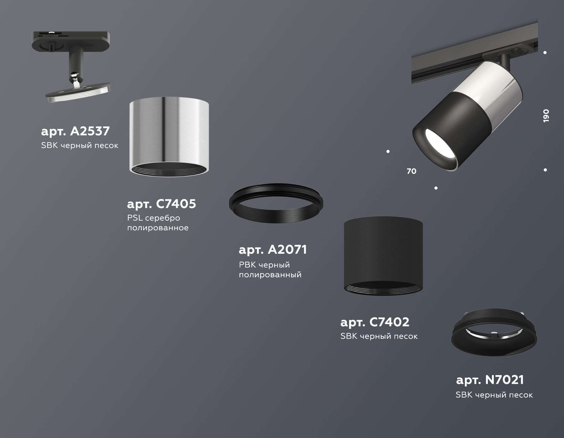 XT7402071 SBK/PSL/PBK черный песок/серебро полированное/черный полированный MR16 GU5.3