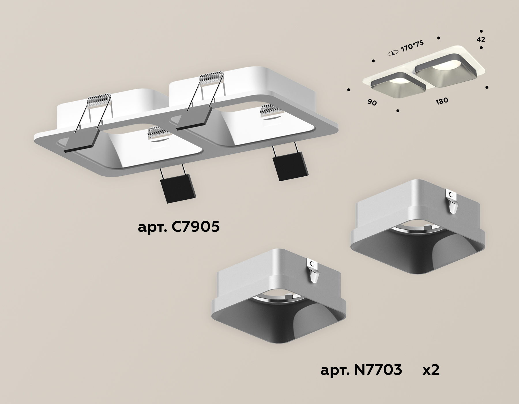 встраиваемый корпус 180*90 (цоколь GU5.3 в комплекте), насадка передняя 70*70 (2шт.)