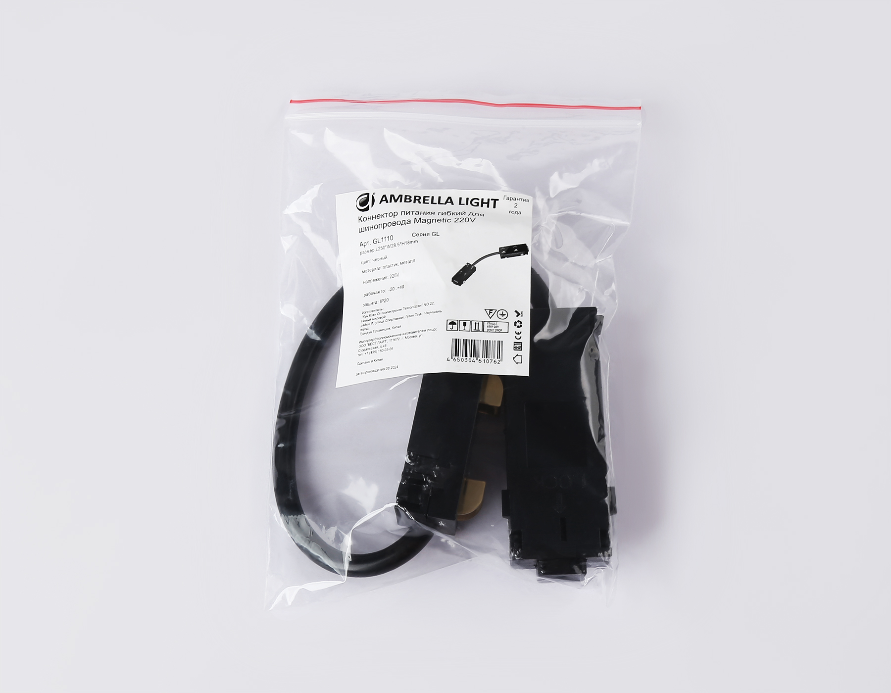 GL1110 BK черный коннектор питания гибкий для шинопровода Magnetic 220V 250*28.5*18