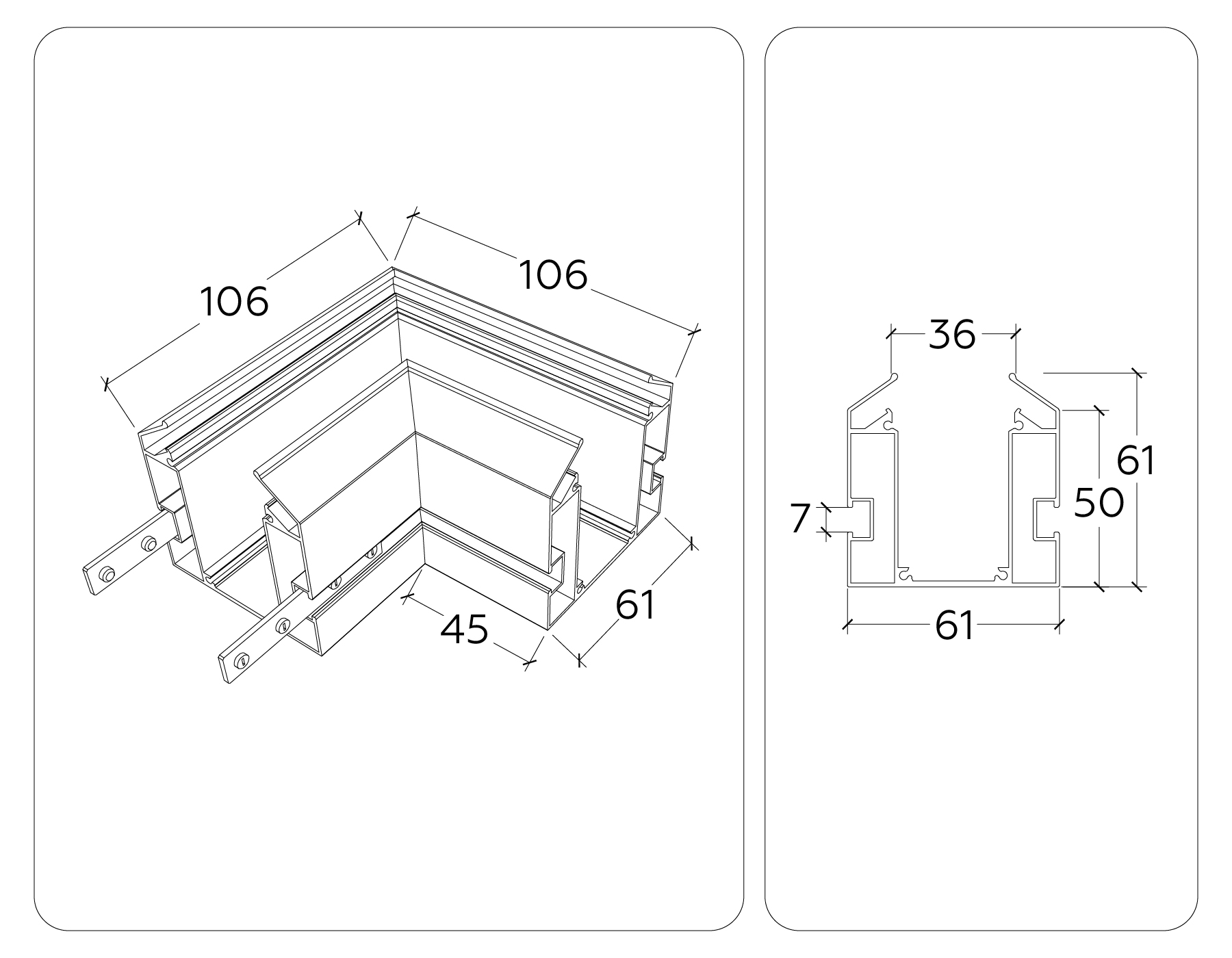 GL1043 BK черный коннектор угловой для корпуса в натяжной потолок Magnetic 220V 100*100*61