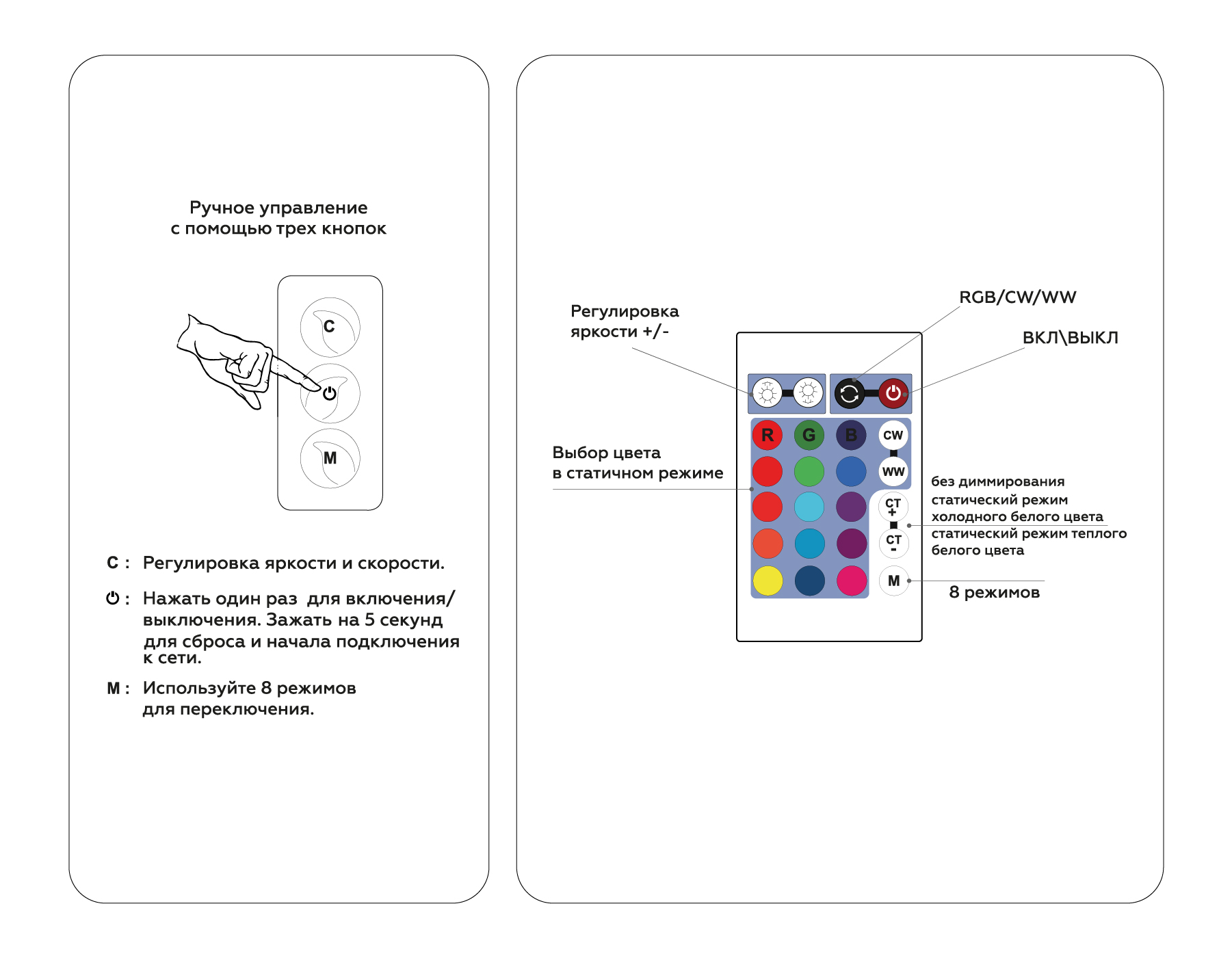 GS11601 контроллер WIFI Tuya RGB+CCC 10A 12V 120W/ 24V 240W (ПДУ ИК CR2025)