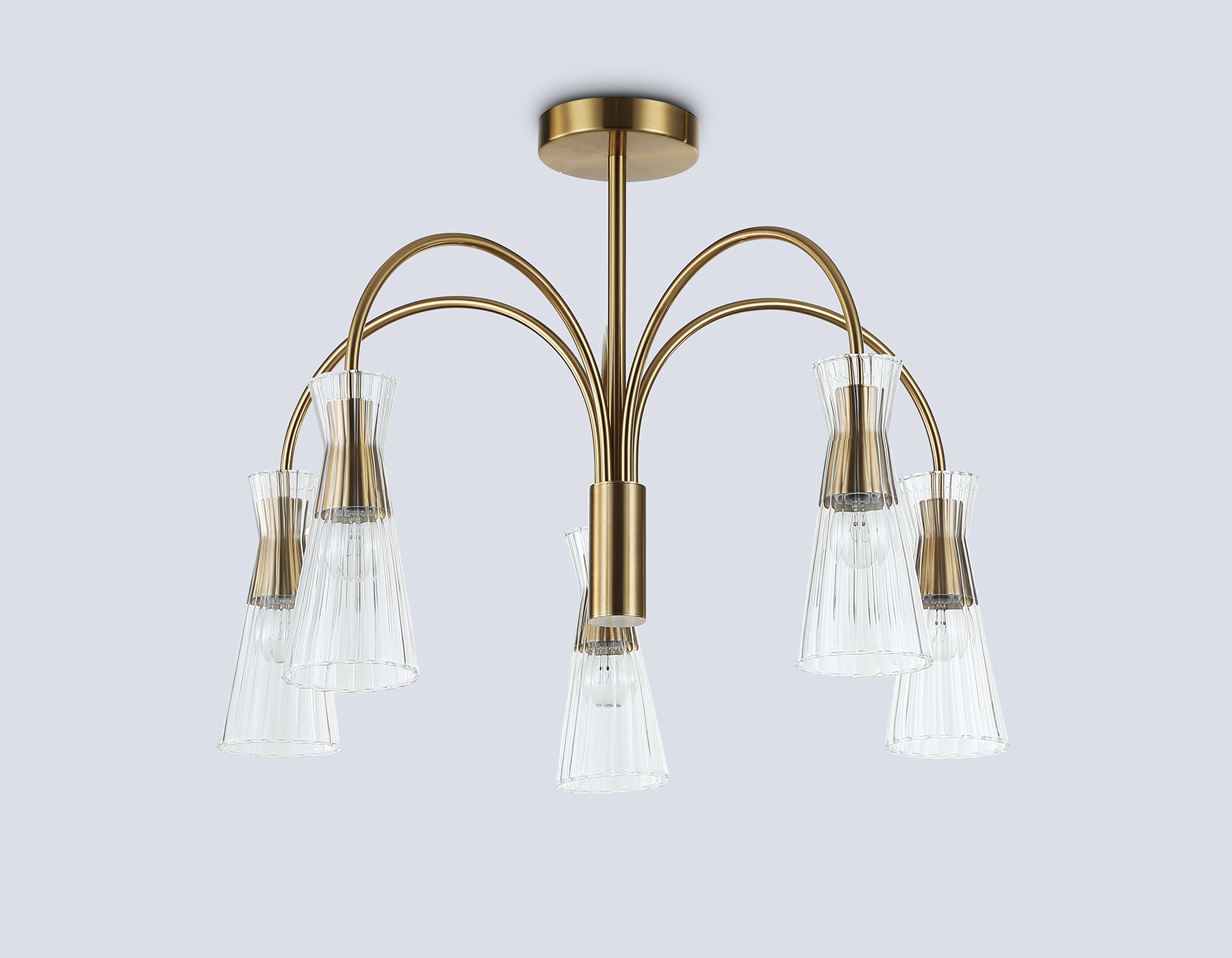 Подвесная люстра на штанге из коллекции HIGH LIGHT. Модель LH55701 представлена в стиле модерн. Люстра выполнена из металлического каркаса цвета латунь и стеклянных прозрачных плафонов. Имеет пять цоколей Е14. Люстра будет прекрасным дополнением в любом помещении.